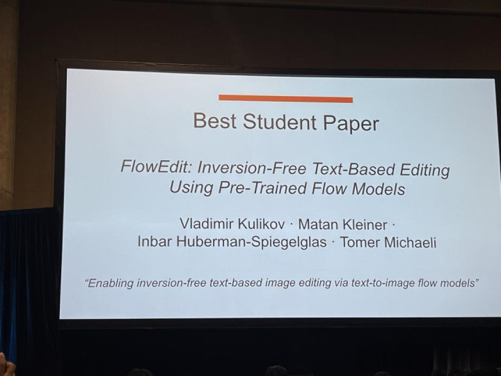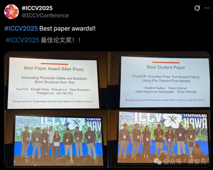 来自CMU团队因提出BrickGPT摘下了「最佳论文」桂冠,以色列理工学院团队FlowEdit拿下了「最佳学生论文」。