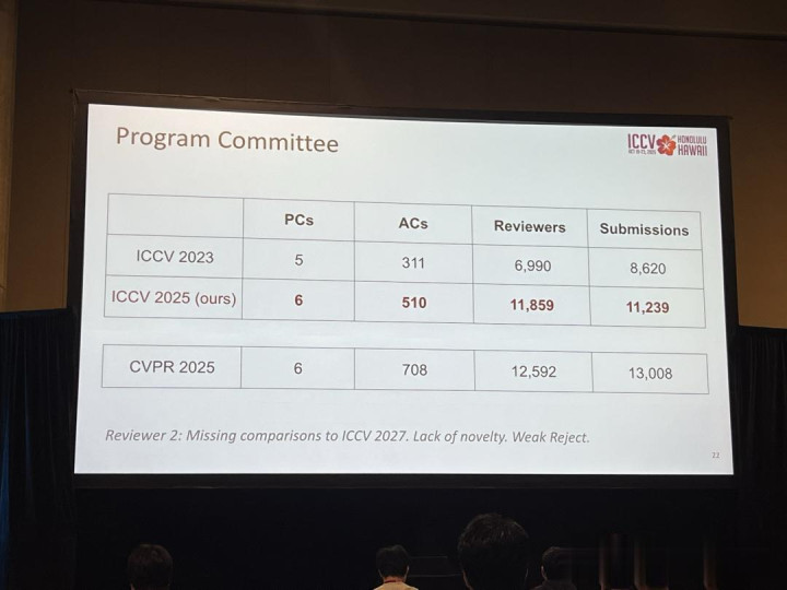 可见,这一届的ICCV规模,堪比CVPR 2025。