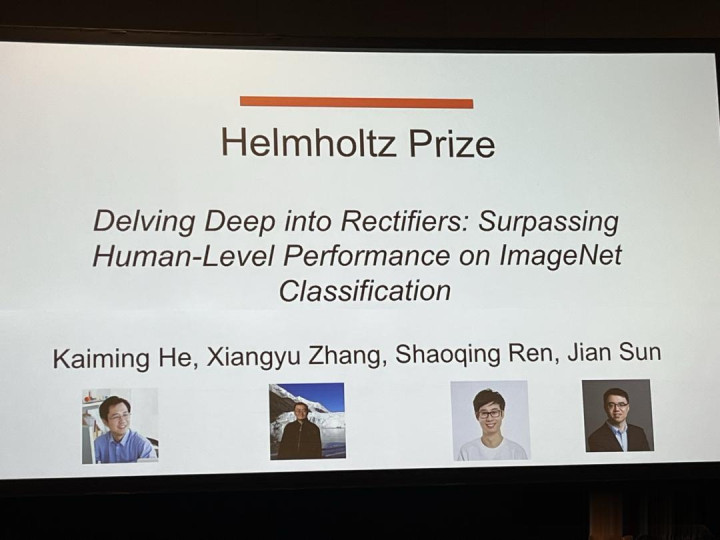值得一提的是,一篇曾由何恺明、张祥雨、任少卿和孙剑发表于十年前的论文,荣获Helmholtz Prize。
